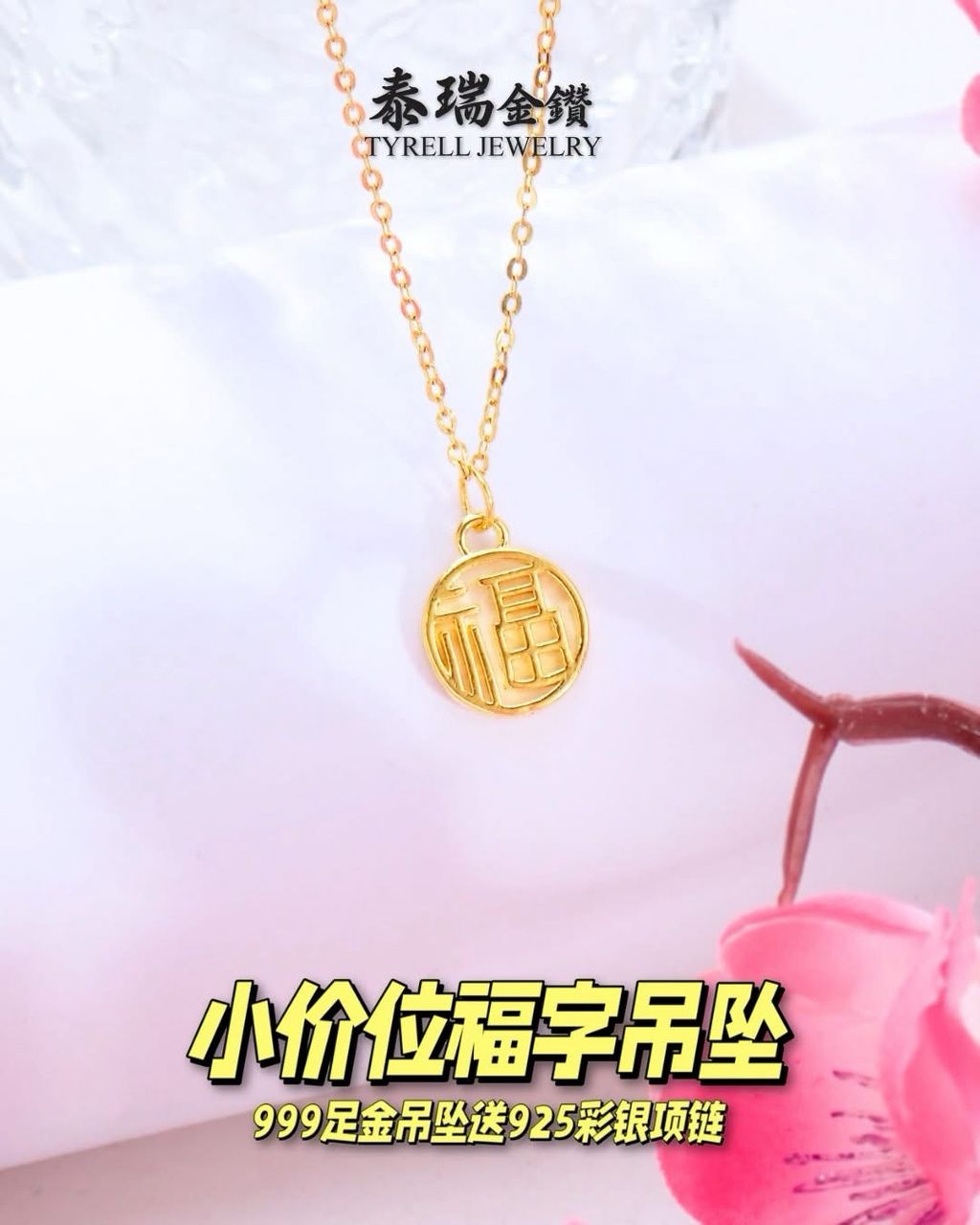 🧧✨【小价位福字吊坠|999 足金 + 送925银项链】✨